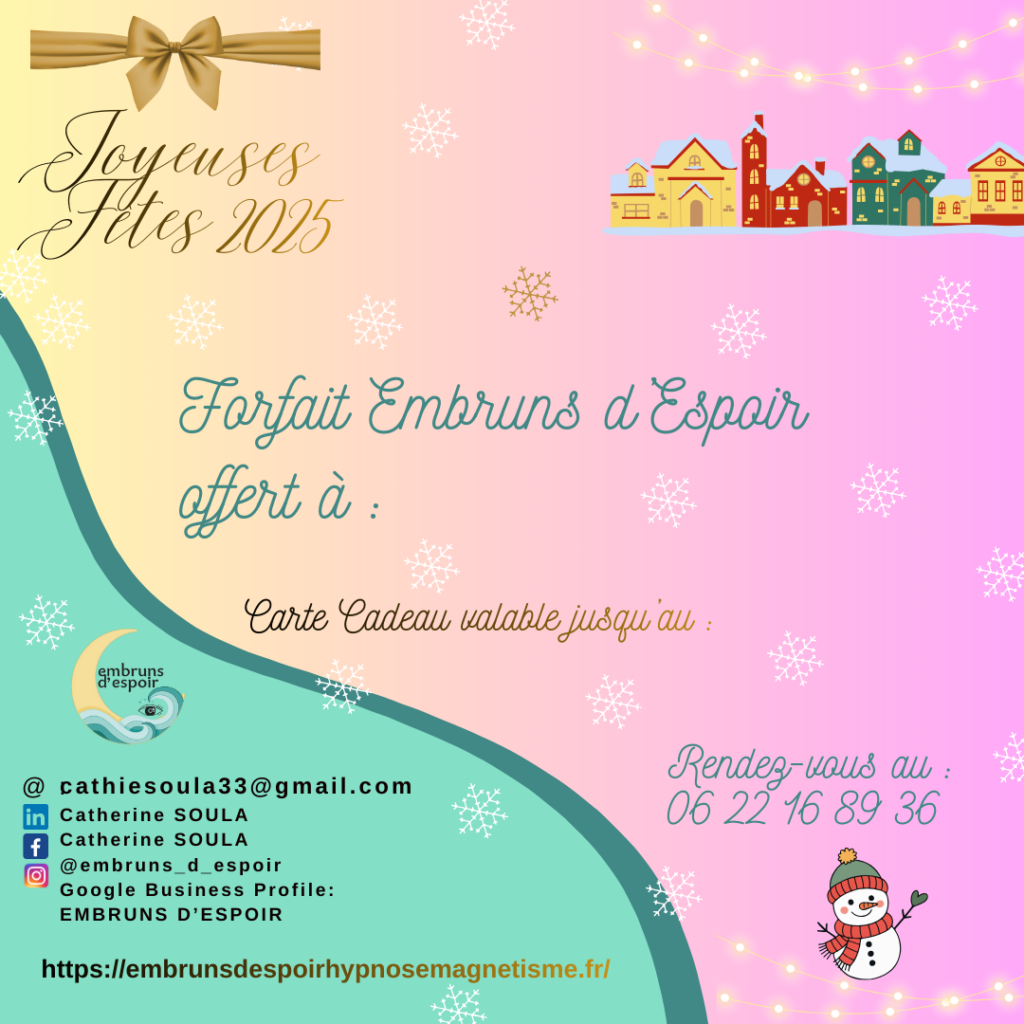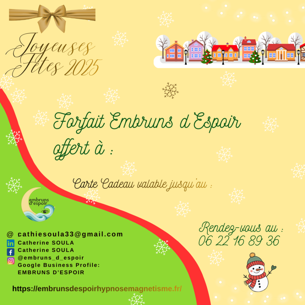 Les CARTES CADEAUX ‘EMBRUNS D’ESPOIR’ sont disponibles à la vente !